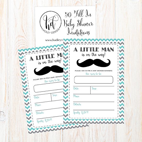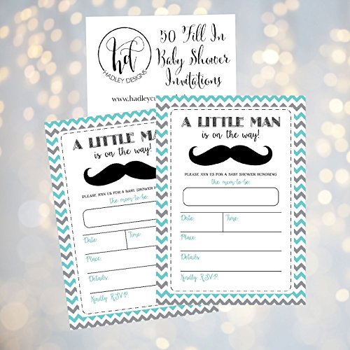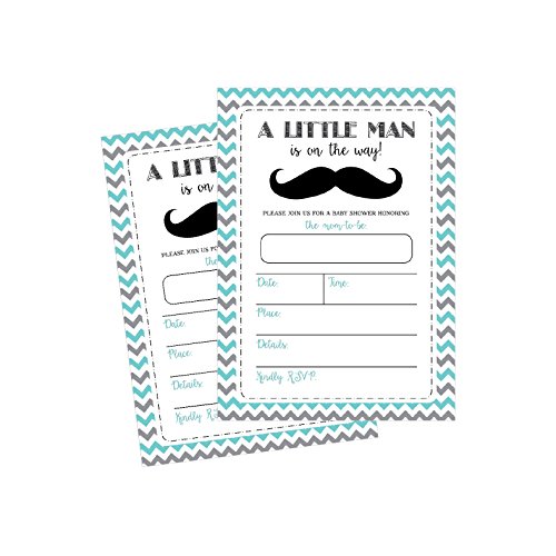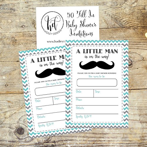 50 Fill in Mustache Baby Shower Invitations, Little Man Baby Shower Invitations Chevron, Little Boy Baby Shower Invites, Baby Boy Shower Invitations, Neutral, Mustache Party Invitations