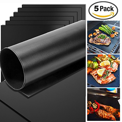 BBQ Grill Mat Set of 5 Non-stick for Home Cooks and Grillers Baking Reusable and Easy to Clean Charcoal Electric Grill and not Work on Gas,15.75 x 13 Inch