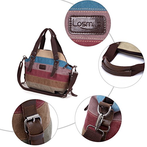 -. Title : LOSMILE Women's Multi-Color Canvas Shoulder Bag Handbags, Casual Vintage Hobo Top Handle Tote Hobo Shopper Purse, Large Capacity.