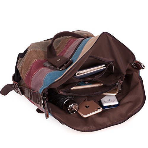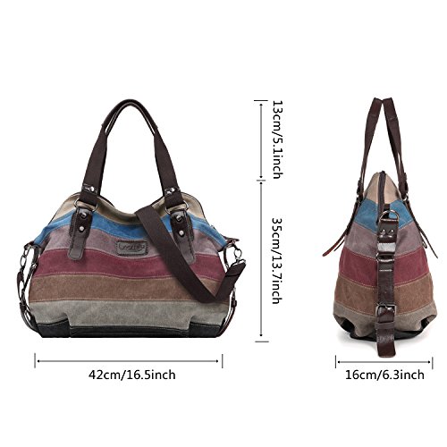 -. Feature : A GREAT VALUE CANVAS BAG: Gorgeous, subtle colours and nice high quality canvas material,which is elegant and luxury,stitching all seemed secure and robust with no loose threads showing,general use for womens. / MEDIUM TO LARGE HANDBAG: Plenty compartments inside and plenty of room- easily enough space to put your 13'' laptop and perfect for use as your carry-on hand lage, especially with the optional long shoulder strap, special mobile phone pocket so it doesn't fall to the bottom, and secret zippable pockets for passports! / REMOVEABLE ADJUSTABLE SHOULDER STRAP: Two smaller handles are useful for keeping the bag close to you but the longer strap, which is detachable, allows you to hang it off the shoulder or wear it across the body, whichever you prefer, 3 carrying options (Crossbody, single shoulder and hand carry). / OVERALL DIMENSION: Approx: 12.6 inch(H)*16 inch(L)*7.1 inch(D),plenty of room for everything you will ever need to carry about with you. / FIT IN WELL WHERE: It fits in seamlessly with any look - from casual jeans to dazzling dresses.
