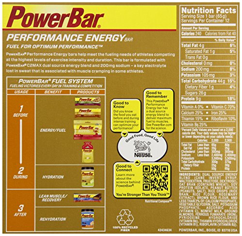 When you're a serious athlete competing at the highest levels of exercise intensity and duration, fueling up right can make a huge impact on how you feel and perform. PowerBar Performance Energy Bars are formulated with PowerBar C2MAX dual source energy blend: a 2:1 glucose to fructose blend found to deliver 20 to 50 percent more energy to muscles than glucose alone.