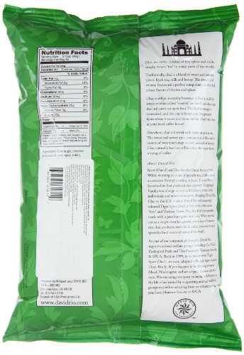 -. Binding : Grocery -. Brand : David Rio -. EAN : 0658564618140 -. Feature : The first chai created using a green tea base / As innovative as it is delicious / Simply mix with hot water or milk / 1 bag makes about 52 cups -. IsAdultProduct : 0 -. Label : David Rio San Francisco -. Manufacturer : David Rio San Francisco -. Model : 11034 -. MPN : 11034 -. PackageQuantity : 1 -. PartNumber : 11034 -. ProductGroup : Grocery -. ProductTypeName : GROCERY -. Publisher : David Rio San Francisco -. Size : 4 lb bag -. Studio : David Rio San Francisco -. Title : Tortoise Green Tea Chai, 4lb. Bag -. UPC : 658564618140