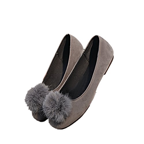 -. Title : パンプス レディース ファーパンプス ローヒール ミュール シューズ 靴 履きやすい 美脚 かわいい ファー スエード調 ぺたんこ フラット ふわふわ おしゃれ 楽チン 軽量 女性 通勤 靴 秋冬 22.5-24.5cm 黒 グレー (24cm, グレー)