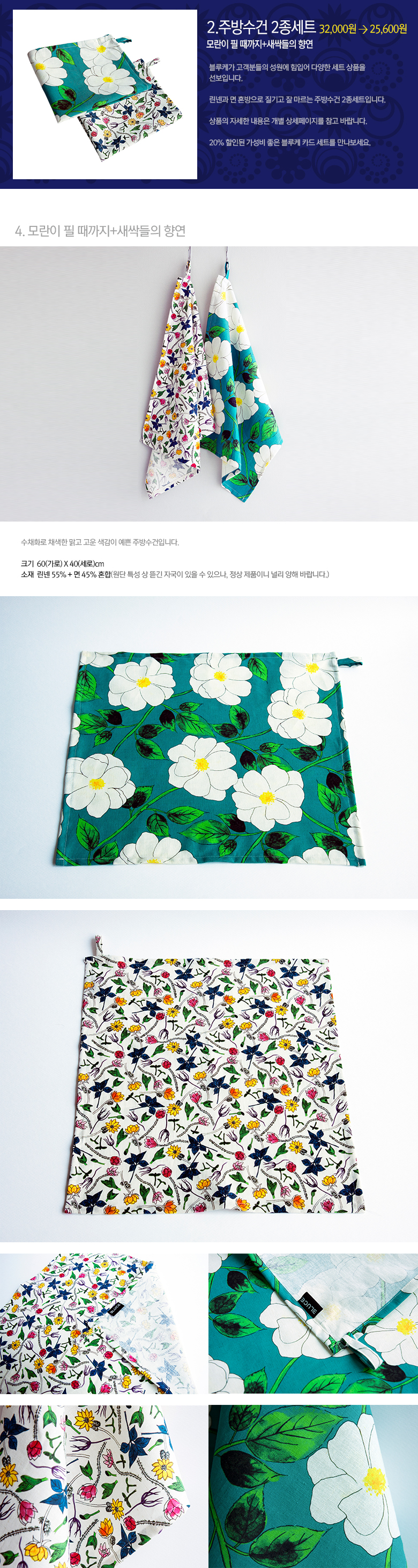 상품명 : [주방수건 2종 세트]모란이 필 때까지+새싹들의 향연