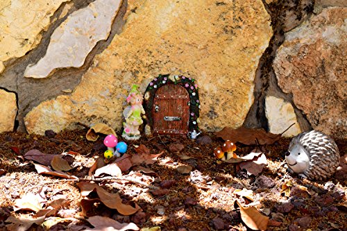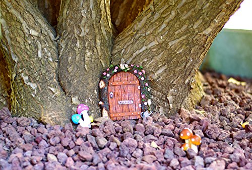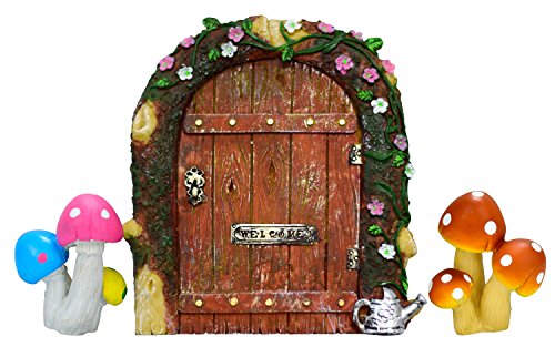 The pack contains: one fairy garden door (4.7 inch high, 4.1 inch wide), two mushroom sets of different colors 2.2 inch high that can be used as your fairy garden accessories