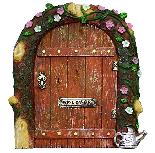 TROLIR Fairy Door for Trees, Miniature Fairy Garden Accessory, Mystical Gnome Home Door for Outdoor Decoration, Resin, 4.7 Inch High, Comes with Two Mushroom Sets