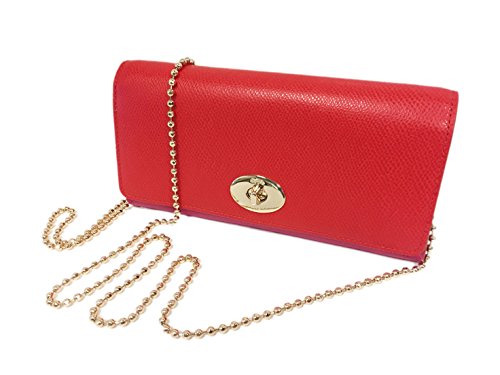 -. Title : Coach Slim Chain Envelope Wallet in Bicolor Crossgrain Leather F53308