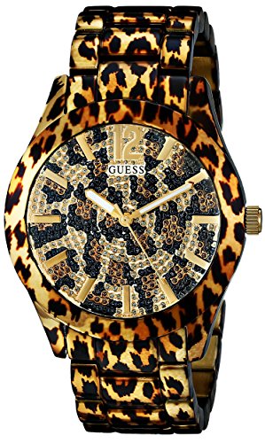 Define Your Time with this GUESS Sporty Animal Magnetism Gold-Tone & Animal Print Watch