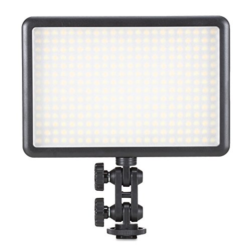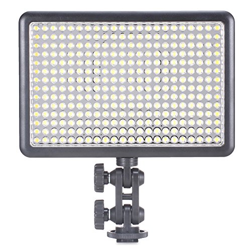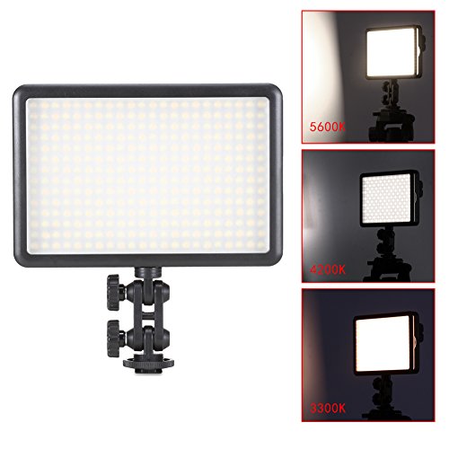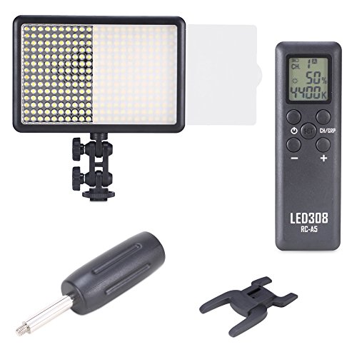 - Feature : 308-LED-bulbs panel is lithium-ion or DC powered. / Wireless 433MHz grouping system (6 groups & 16 channels). / Wirelessly adjust brightness or color temperature. / Include a remote control, a portable handle, a mini stand. / Large-sized LCD panel. Settings auto saved. Quickly change panel angle. Fits almost any cameras and camcorders.
