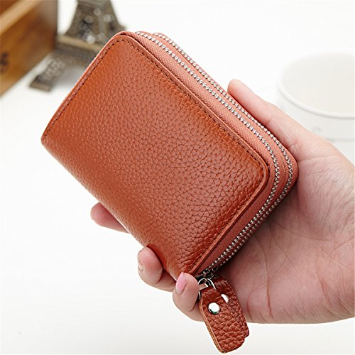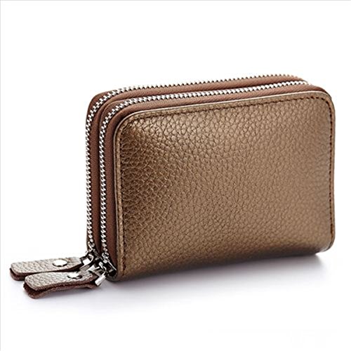 -. Title : Fashion Square Style Card Wallet Genuine Leather Double Zipper Short Coin Purse