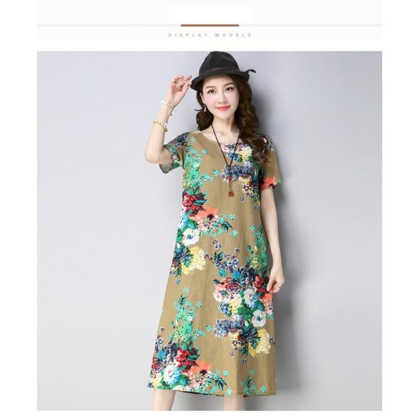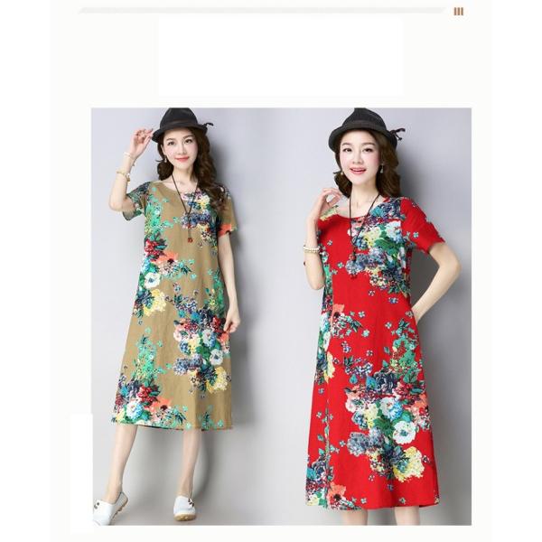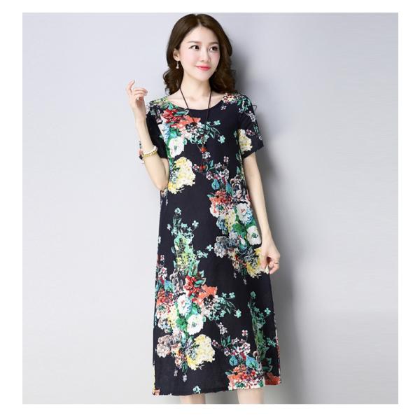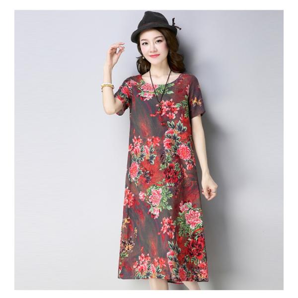 オリエンタル風カラーの花柄ワンピースドレス。