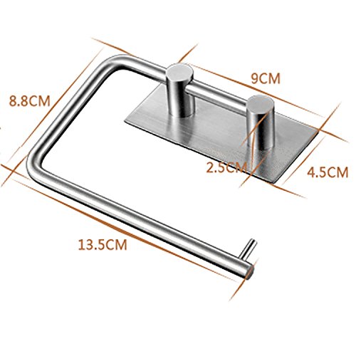Goodfure Self Adhesive SUS 304 Stainless Steel Toilet Paper Holder Storage Bathroom Kitchen Paper Towel Dispenser Stick On Sticky Tissue Roll Hanger Wall Mount Contemporary Style, Brushed Finish-1pc
