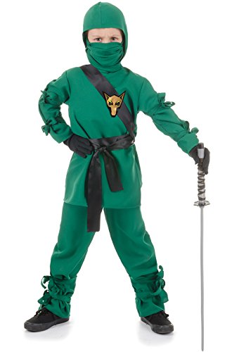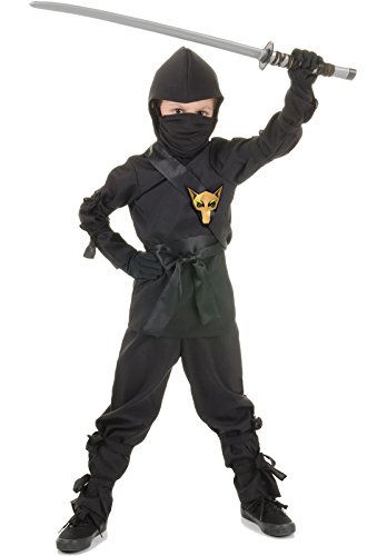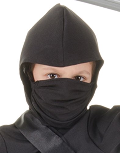This child black ninja costume includes the shirt, pants, hood, mask, sash and belt.
