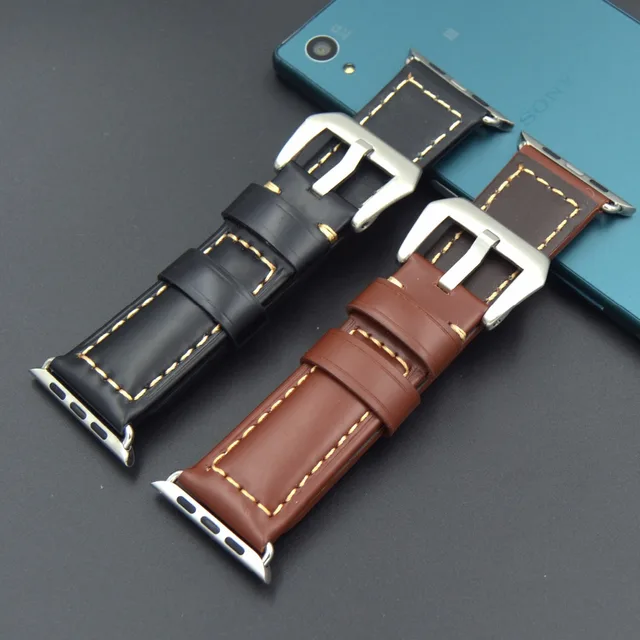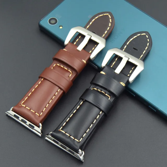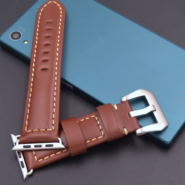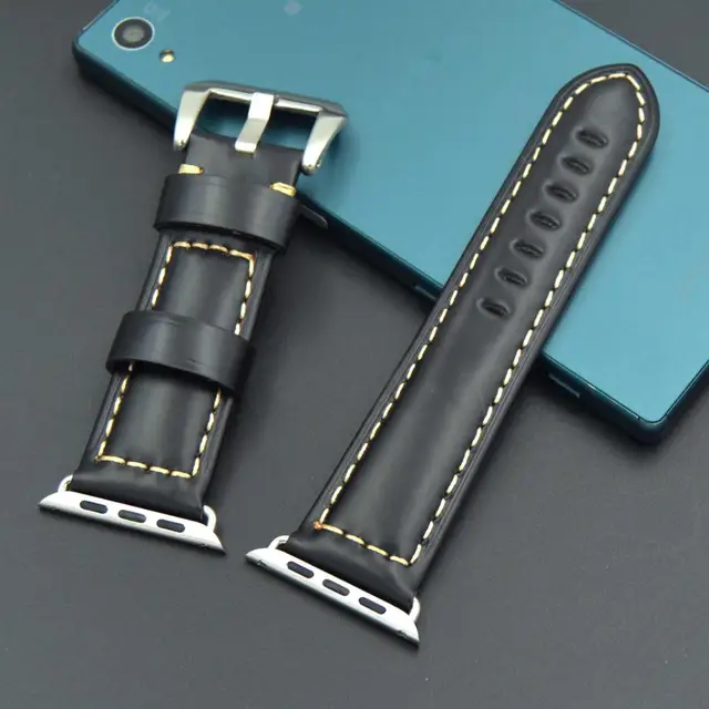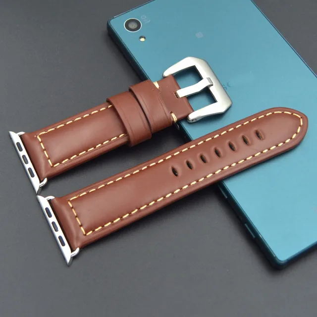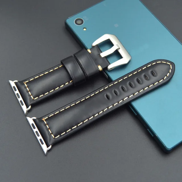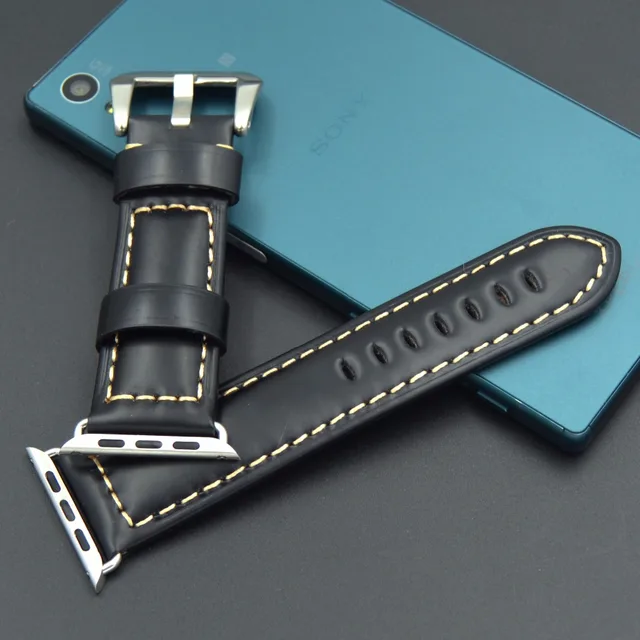 | [해외] 38 미리메터 42 미리메터 고품질 정품 송아지 가죽 시계 스트랩 큰 스틸 버클 애플 시계 밴드 Iwatch 빠른 배달 |
