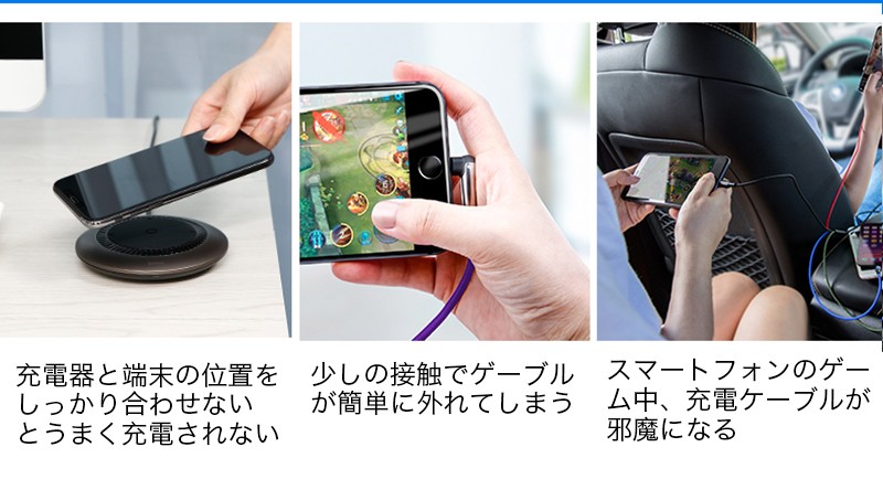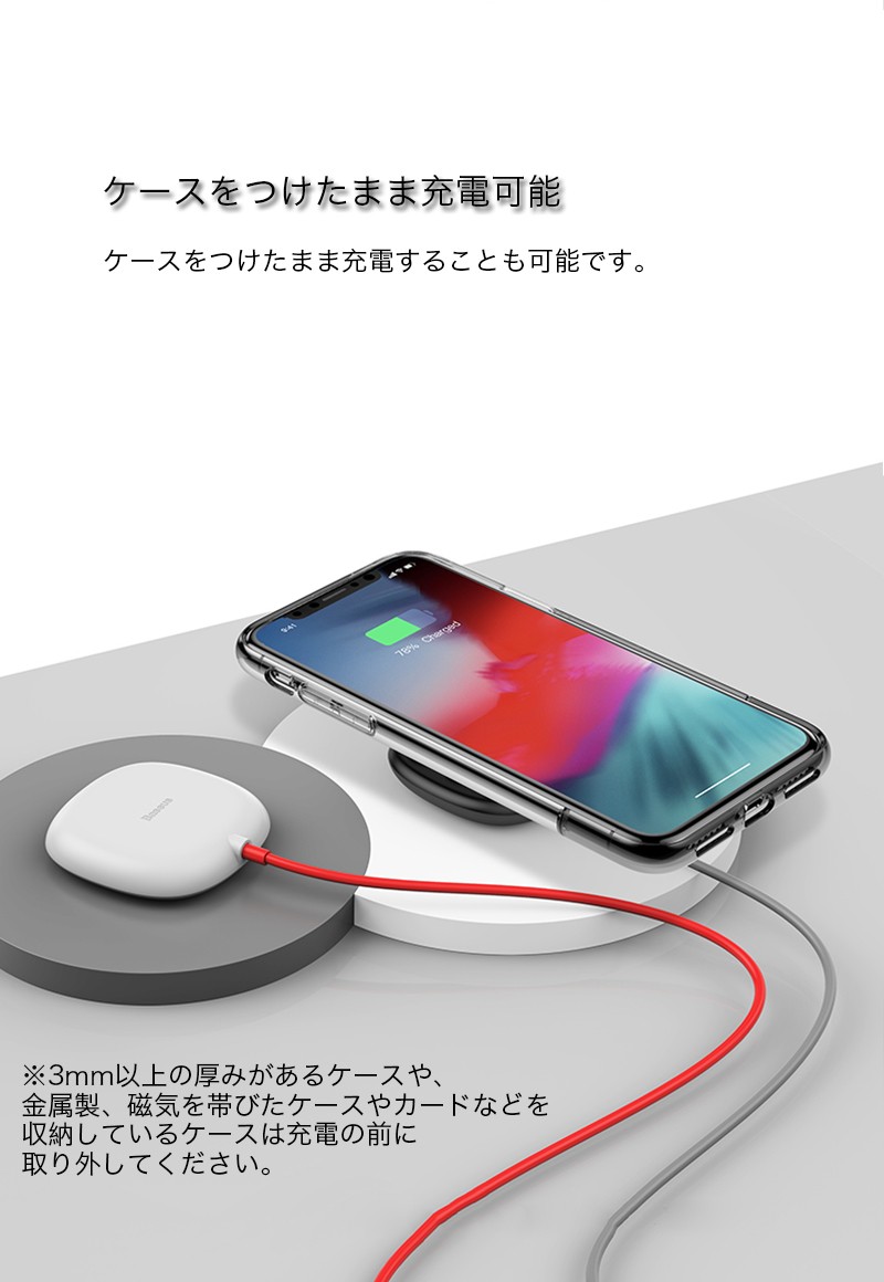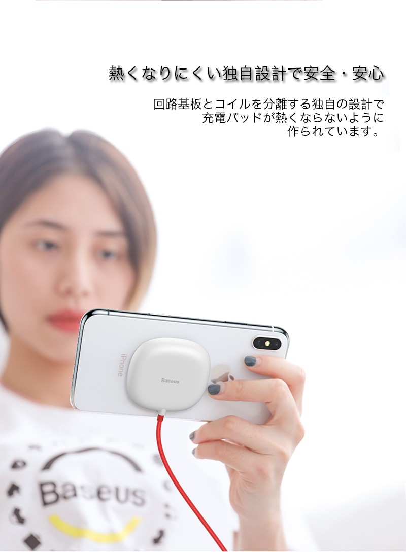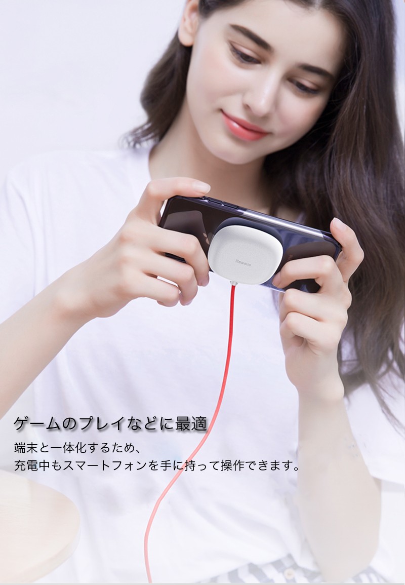 ★「対応機種」iPhoneXS、iPhoneXS Max、iPhoneXR、iPhoneX、iPhone8、iPhone8 Plus、GALAXY S8、GALAXY S8+、GALAXY S9、GALAXY S9+、Xperia XZ3、Xperia XZ2、Xperia XZ2Premium等Qi規格対応の機種適用★「カラー」ブラック(黒)、ホワイト(白)★「商品特徴」“置くだけ充電”から進化!スマートフォンの背面に吸盤で固定できるワイヤレス充電パッドです。ゲル吸盤内を真空状態にし、しっかり固定することができ、取り付けも簡単です。最大出力10Wで、iPhoneの高速充電7.5W、Galaxy/HUAWEIの急速充電10W、通常の5Wの幅広い規格に対応しています。★「キーワード」ワイヤレス充電器 吸盤式 急速充電対応 Qi規格対応 iPhone Galaxy Xperia アイホン ギャラクシー エクスペリア USB電源式 高温防止 ゲーム 最適 コンパクト おしゃれ スリム シリコン ポリカーボネート