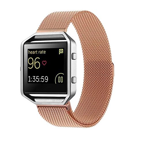 Fitbit Blaze Accessories Bands Large,SOWELL Milanese loop stailess steel Bracelet Strap for Fitbit Blaze Smart Fitness Watch (Rose Gold )