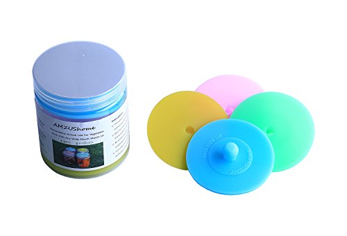 AMZUShome One-Piece Silicone Waterless Airlock Fermenting Lids Canning Kit For Wide Mouth Mason Jar Fermentation,Homemade Fermented Vegetables,Sauerkraut, Kimchi ,Pickles Kit.(4 Pack)