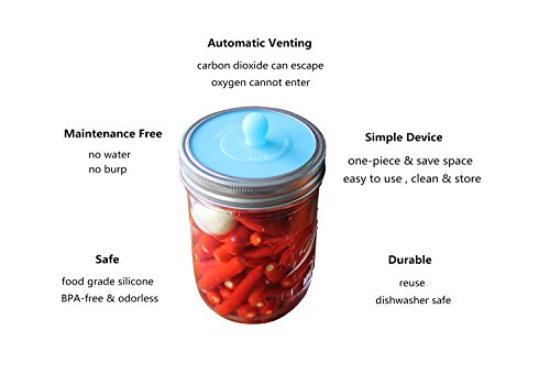 - ❤ SAFE - Material: Food grade silicone, Bpa-free,odorless. Automatic Venting: carbon dioxide escapes from the vent.self-venting jars eliminate the worry about things exploding. oxygen cannot enter, eliminates risk of mold.