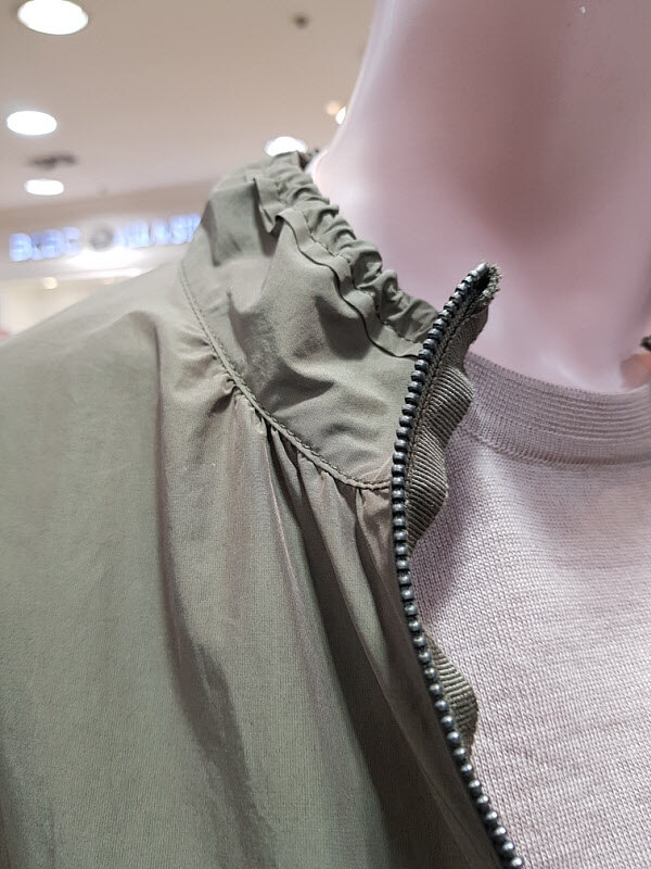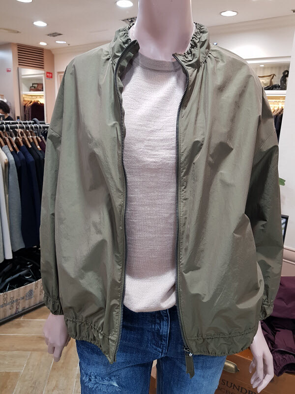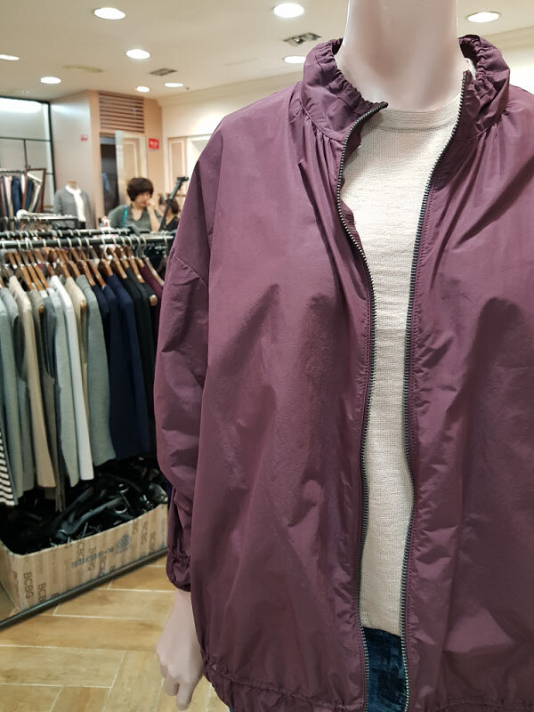점프느낌의 자켓이며 목선과 소매부분이 샤링이 살짝 잡혀서 아주 귀여운느낌의 점퍼형자켓입니다가을에 살짝 걸쳐입기좋은 옷이예요