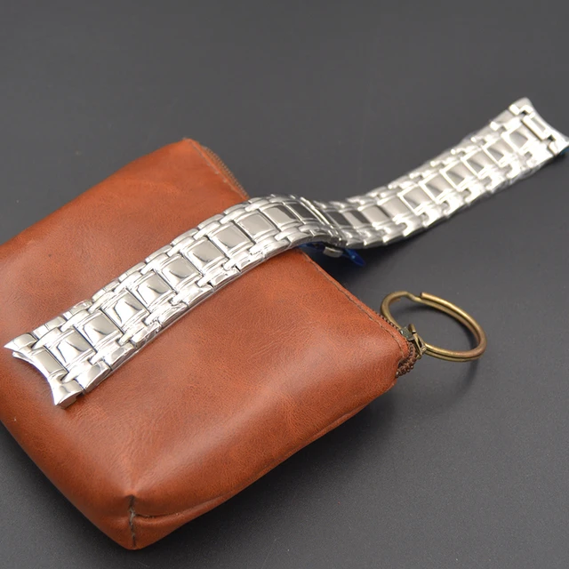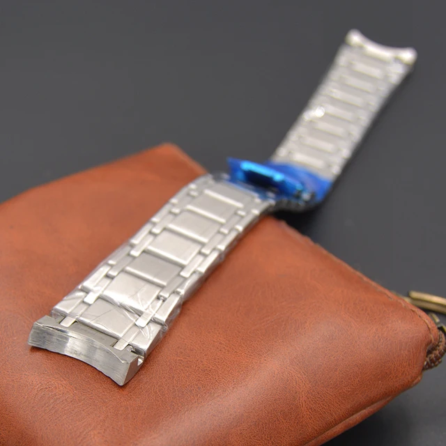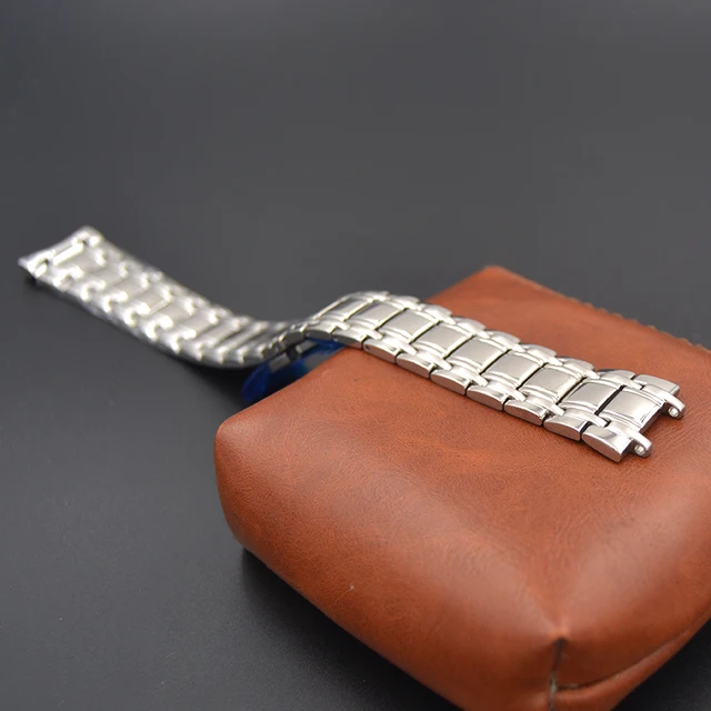 | [해외] 높은 품질 22 미리메터 실버 스테인레스 스틸 시계 밴드 남성 손목 시계 스트랩 교체 나비 buckleClasp 푸시 버튼 |