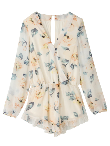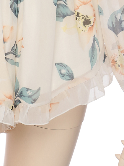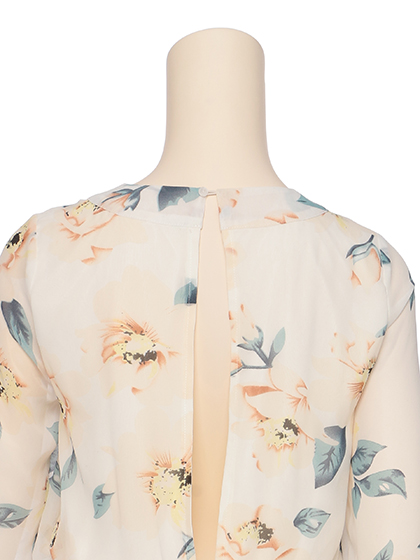 シフォンの素材感を生かした袖の透けや脚長効果のある裾ラインは、軽やかなセクシーさをアピール。