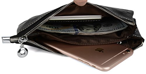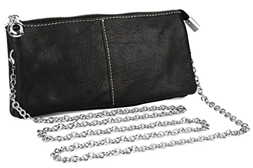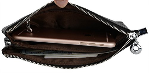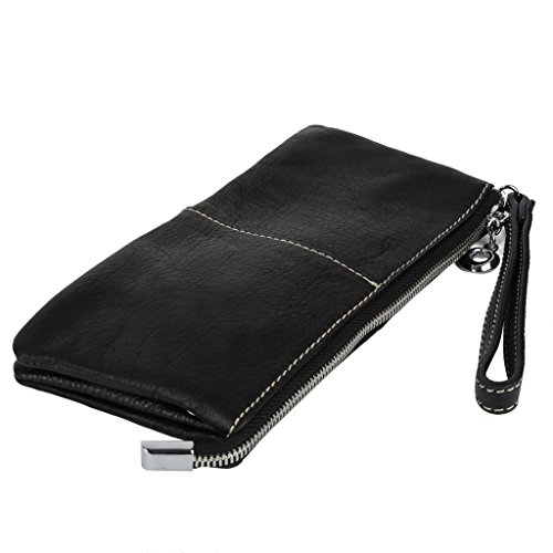 - Feature : Soft Cowhide Leather with Oiling and Waxing Finish.2 compartments with a wrist strap and a silver-color metal shoulder chain for multipurpose carry. / Shiny silver-color hardware, heavy duty zipper and detailed contrast stitching brightens up the wallet.Fit up to large smartphones like Samsung Galaxy S3/S4/S5/S6 and LG G3/G4 and iPhone6 Plus. / 2 compartments,one card slot and a zipped change pocket.You can actually stash 8 cards in the slot.This clutch wallet can hold your makeup/cash/change/cards and large smartphones like Samsung Galaxy S3/S4/S5/S6, LG G3/G4,Samsung Note2/3/4 and iPhone6 Plus. / Large capacity yet convertible.This is a 3-way carrying wallet:hold it in your hand/carry it as wristlet/a little shoulder bag with the shoulder chain. / Dimensions: 8.07"L x 4.13"H x 0.59"W.Comes with a shoulder chain(length up to 49") and a wrist strap.