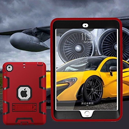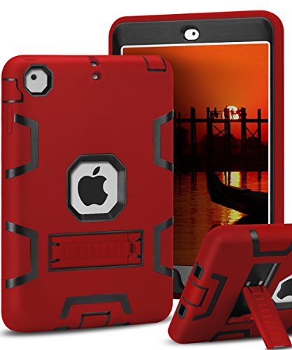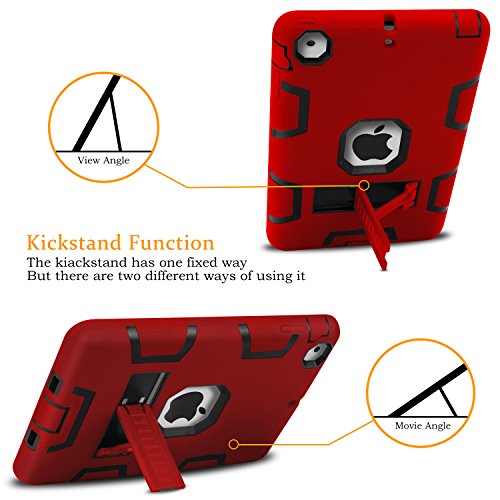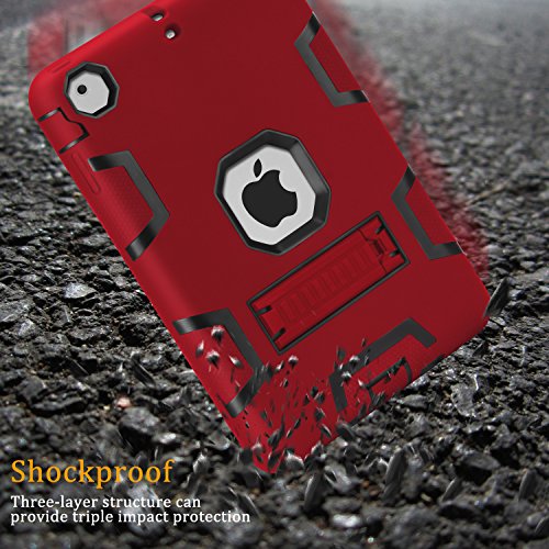 iPad Mini 3 Case,iPad Mini 2 Case,iPad Mini Case,TIANLI(TM) ArmorBox [Three Layer] Convertible [Heavy Duty] Rugged Hybrid Protective With KickStand Case For iPad Mini 3/2/1,Red/Black