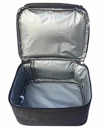 -. Feature : TWO DIVIDED COMPARTMENTS: two sections that keep cold and warm items separate. On top, a roomy pouch is great for chips, fruit, drinks snacks and cookies. Square bottom compartment used to carry your lunch, sandwich, salad and etc. / SCHOOL TRAVEL OR WORK: a perfect cooler bag for lunch or snacks on the road, ideal for people with special diets, food sensitivities or allergies. A multi-purpose bag, can be used to storage food for work, to school or on traval. / DIMANSION: 9 x 7 x 9 inches, 7L inner capacity, roomy enough to hold enough food for a whole day work or for 1-2 people for picnic. / MATERIAL: made with 600D durable Polyester wipe clean easily, 10mm PE foam padding thick enough to keep food warm or cold for much longer, interior insulated PEVA lining, eco-friendly, food safe. / CONVENIENT HANDLING DESIGNED: it comes with an adjustable and removable shoulder strap, and a comfort-grip handle.
