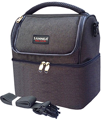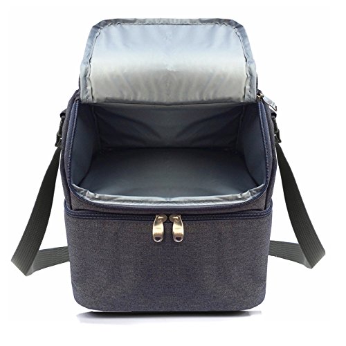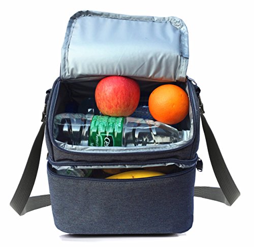 -. Title : Kinnet Insulated Double Decker Cooler Lunch Bag with Removable Shoulder Strap for Men, Women