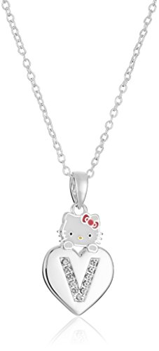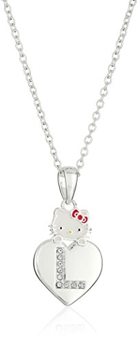 Silver-plated necklace featuring pendant with enamel Hello Kitty and heart with crystal initial Link chain with spring-ring clasp Imported Brand : Hello Kitty Item model num : CF00048SEL-Q.AZ MPN(PartNumber) : CF00048SEL-Q.AZ EAN : 0887746108777