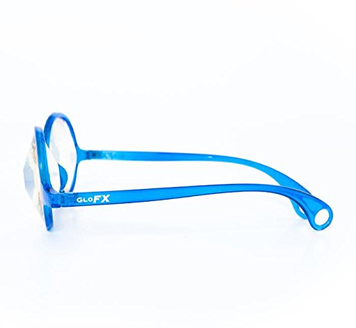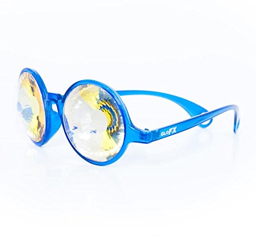 GloFX has once again redefined what festival attendees expect from their rave eyewear. Our Transparent Blue Kaleidoscope Glasses with Gold Wormhole Kaleidoscopic Lenses mash-up features of both the most elegant and the most extreme, resulting in an all-new light show experience that says "I like to party, but I look amazing while doing it!". Transparent Blue Glasses with Gold Wormhole Lenses utilize the highest-quality real glass crystals available, and have a transparent frame designed exclusively by GloFX. Nothing else comes close to the originality of this lens and frame combination.