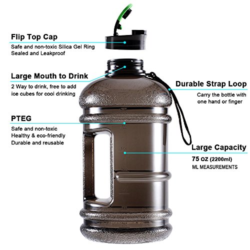 LARGE CAPACITY - 2.2L (75Oz) capacity design deliver your recommended daily water. Enough water for staying hydrated before and after workout, outdoor sports and hiking camping water supplement, greatly supply for daily home office and outdoor life