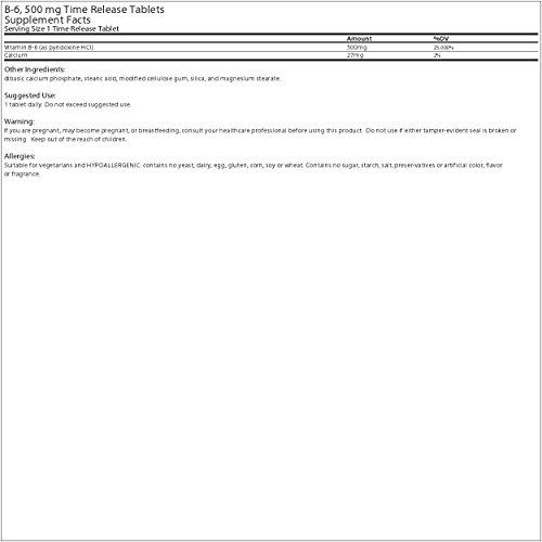 Vit B-6 Pyridoxine 500mg Timed Release