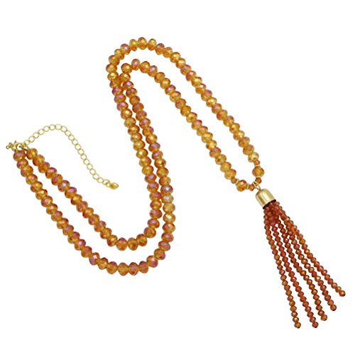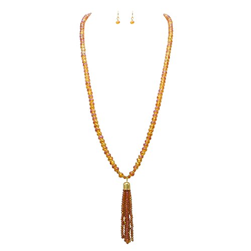 -. Feature : Stylish fashion jewelry set with faceted glass crystal beads and gold tone hardware / 31" necklace with 3" extender chain and lobster clasp; 3.5" tassel length / Matching fish hook dangle earrings; 0.75" length / Great for both casual and dressy looks; for everyday wear or special occasions / Packaged in a gift box