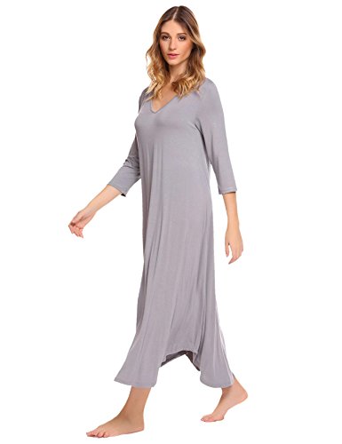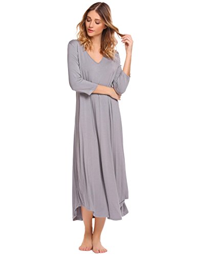 -. Feature : SOFT AND BREATHABLE FABRIC: 95% Rayon and 5% Spandex / BASIC FULL SLIP UNDER DRESS: V Neckline and 3/4 Sleeve. It is also Nice to Wear it as a Casual Shirt Dress / ENJOY YOUR FREE AND WONDERFUL TIME: That would be Great to Wear this Comfy Ekouaer Nightgown When Lounge around the House, Do Some Reading or Listen to Some Music with a Cup of Coffee, Or Take a Nap on Your Sofa / IDEAL FESTIVAL BIRTHDAY WEDDING GIFT: Perfect Choice for Your Girlfriend, Wife on Birthday, Christmas Day, New Year, Valentine's Day or other Festivals or Anniversaries / SIZE NOTE: Tag S=US 4;Tag M=US 6;Tag L=US 8;Tag XL=US 10;Tag XXL=US 12. The Model is Wearing S Size. Our Model Information: Height 174cm, Bust 85cm, Waist 61cm, Hip 88cm