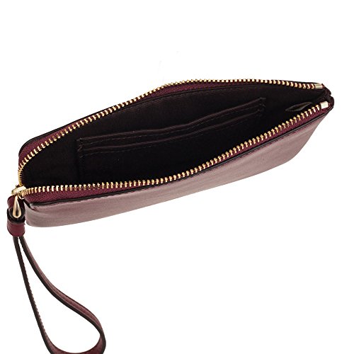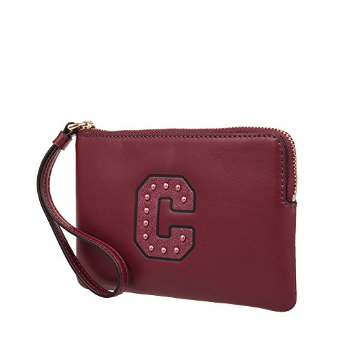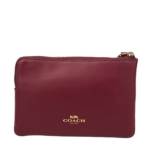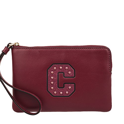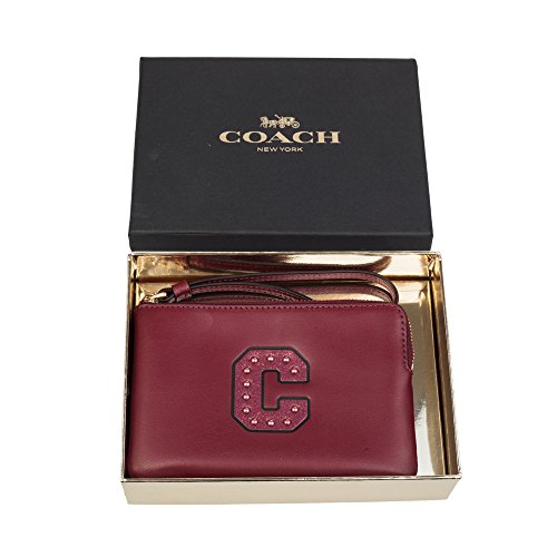 COACH BOXED CORNER ZIP WRISTLET WITH GLITTER PATCH LIGHT GOLD/CRIMSON