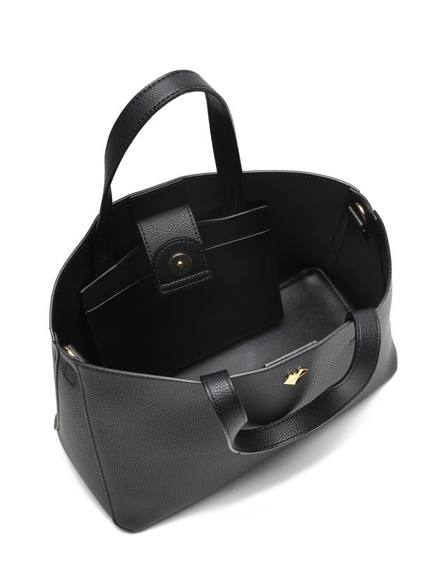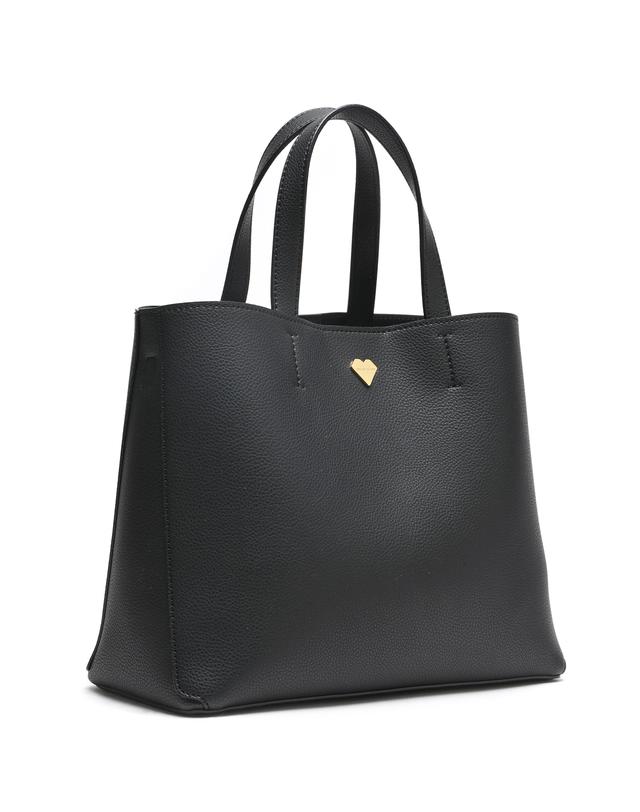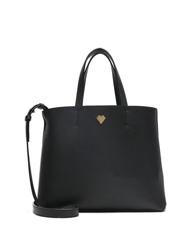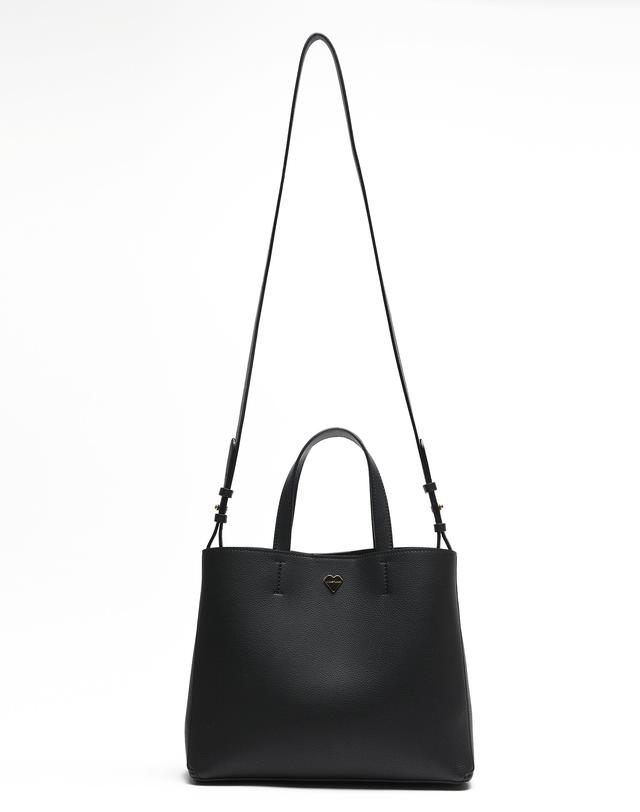베이직한 블랙 가죽 디자인에 질스튜어트만의 골드 하트 로고로 포인트를 준 여성스러운 토트백 겸 크로스백입니다.