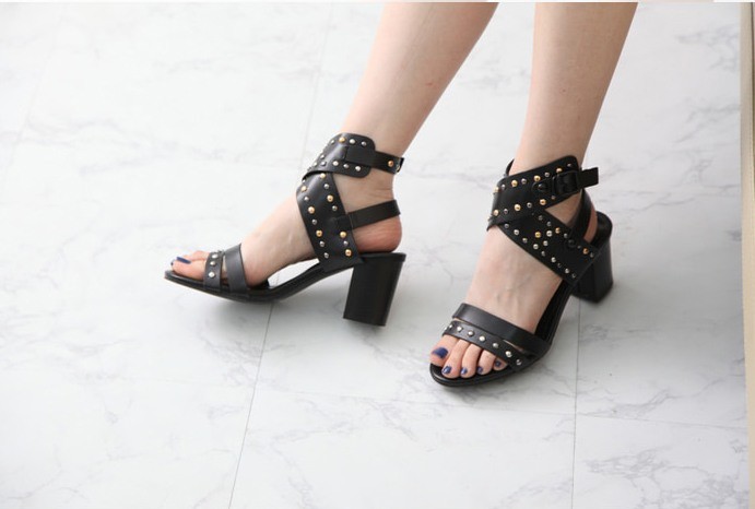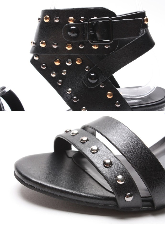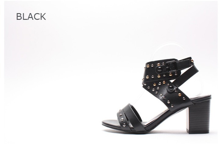 商品名:サンダル レディース クロスストラップ 太ヒール チャンキーヒール スタッズ 2018 春 ファッション 靴 婦人靴