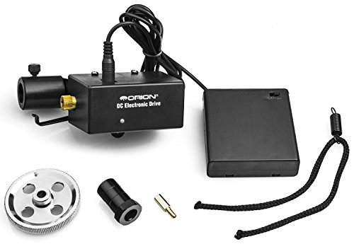Studio : Orion Publisher : Orion Binding : Electronics Product Description Pop this precision mini-motor on a compatible Orion EQ-1C equatorial telescope mount to track celestial objects automatically. It'll make observing easier and more fun! This DC motor drive provides regulated sidereal-rate tracking in right ascension (RA). The EQ-1CM DC Drive features a handy clutch release which can be used to allow manual right ascension adjustments when desired. External disengage allows coarse movement of the telescope by hand with motor attached. The Orion EQ-1CM DC Drive includes the electronic motor assembly, mounting hardware, and battery case. Powered by four D-cell batteries (not included). The EQ-1CM Drive System is compatible with EQ-1C mount and EQ-1C-mounted telescopes including the Orion CT80 EQ 80mm Compact Equatorial Refractor Telescope and Orion BX90 EQ 90mm Equatorial Refractor Telescope. 0