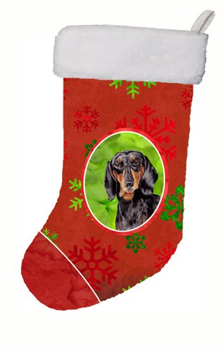 Caroline's Treasures SC9403-CS Dachshund Red and Green Snowflakes Holiday Christmas Stocking, 11 x 18", Multicolor