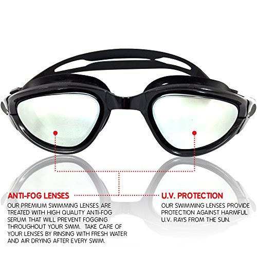 - Feature : 4.7 OUT OF 5 STARS: Happy Swimmers Agree That U-FIT Goggles Are The Best Pair of Goggles That They Have Ever Used! Not Only Are They Happy With Their Top Quaility U-FIT Swim Goggles But Also, Customers Rave About The Outstanding Customer Service That U-FIT Provides! / COMFORTABLE ANTI-LEAKING GOGGLE FRAME - Are You Tired of Goggles Leaking All The Time? U-FIT Goggle Frames Have The High Suction Capabilities That Will Keep Water Out Of Your Goggles Throughout Your Entire Swim While Providing Amazing Comfort Around Your Eyes! Our Unique Nose Piece Is Engineered To Fit All Types Of Face Shapes And Sizes! / Our Highly Durable And Comfortable Fitting Goggle Strap Can Be Adjusted to Fit Any Size! The Dual Strap Provides Extra Comfort While Removing Or Putting On The Goggles As Well Providing A Great Secure Fit While Swimming!! / 100% RISK FREE: We Care About All Of Our Customers And Want To Make Sure You Are Completely Happy With Your Purchase. If, For Whatever Reason, You Don't Absolutely Love Your U-Fit Sports Swimming Goggles, Let Us Know, And We'll Refund Every Penny (Or Replace It, If There Is A Defect). / 100% U.V. PROTECTION, ANTI-SHATTER, ANTI-FOG, MIRROR COATED LENSES - Our Mirrored Goggle Lenses Don't Just Look Great, They Preform Great Too! Our Durable Lenses Will Keep Goggle Fogging To a Minimum! They Also Provide Exceptional Clarity In Vision! Their Anti-Shatter Technology Protects Against Drops And Scratches!