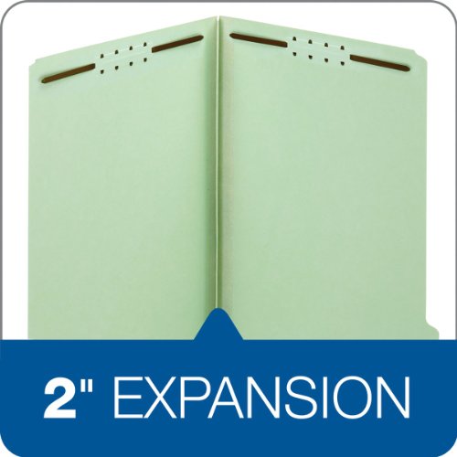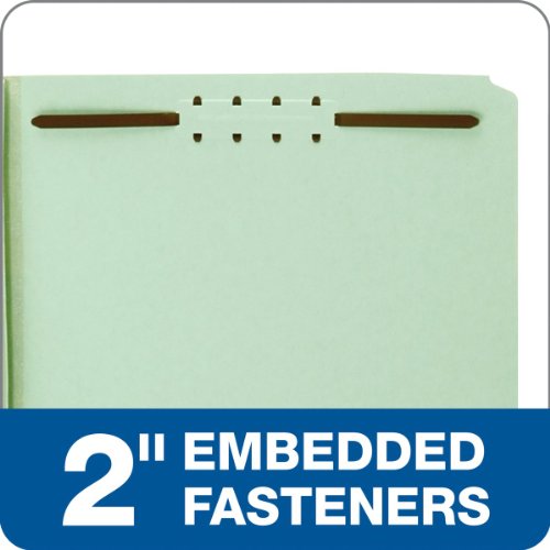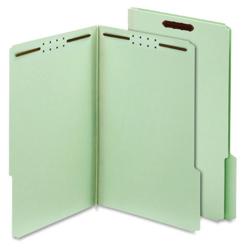 Globe-Weis Pressboard Folders with Fasteners, 2-Inch Expansion, 2-Inch Fasteners, 1/3 Cut Tabs, Legal Size, Green, 25-Count (29934)