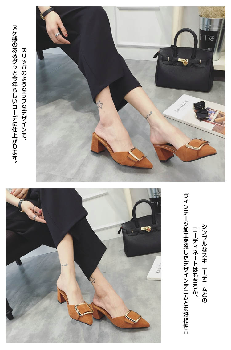 | トレンディーな大人の足元を演出してくれるスリッパサンダルです。スリッパのようなラフなデザインで、ヌケ感のあるグッと今年らしいコーデに仕上がります。シンプルなスキニーデニムとのコーディネートはもちろん、ヴィンテージ加工を施したデザインデニムとも好相性◎チャンキーヒールなので安定感があり長時間の着用でも疲れにくいです。 | |