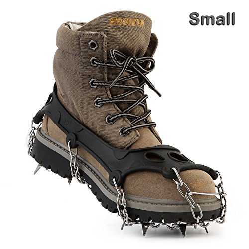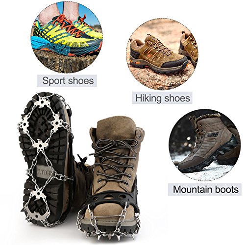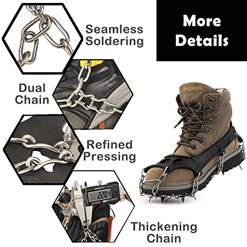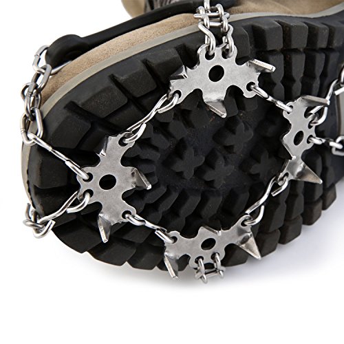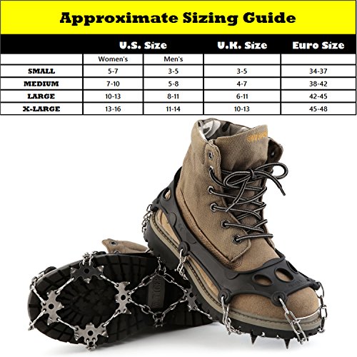 How to use: 1. Carefully fasten the grabbers to your shoes, starting with the large sizes are required if wearing over winter footware 2. We suggest that the grabbers are used only on snow or ice to prevent wear to the studs 3. Always clean the grabbers with a dry cloth after using. Store the grabbers in a cool and dry place, out of direct sunlight Sweet Tips: 1. Traction Cleats ONLY,shoes displayed in pictures are NOT included 2. The snow ice grips are designed only for use on packed sonw and ice.They should not be worn on hard or muddy surfaces devoid of ice cover 3. Since the size above is measured by hand, the size of the actual item you received could be slightly different from the size above Package: 1 x Pair Snow Grips 1 x Package Bag