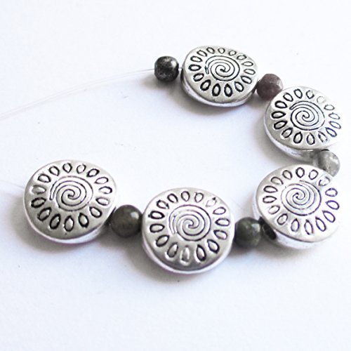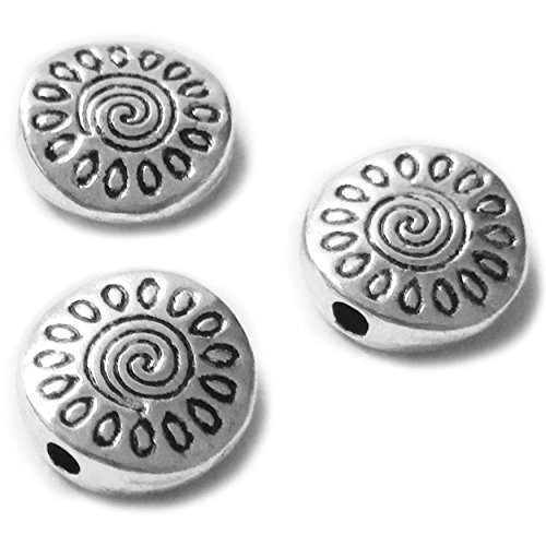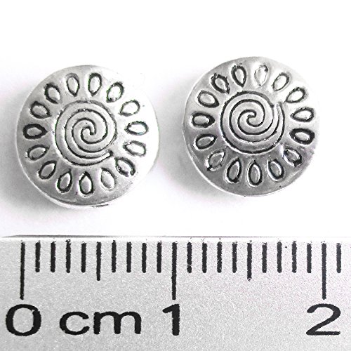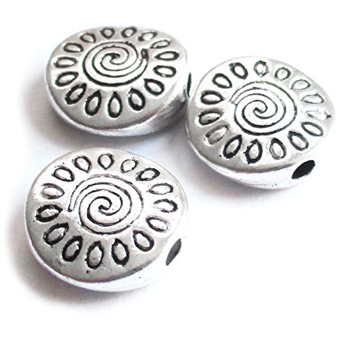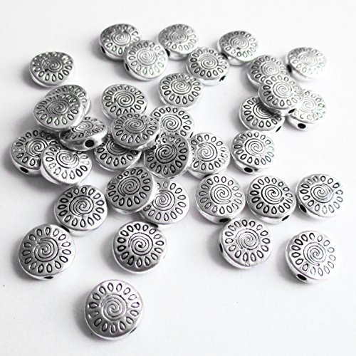 Heather's cf 67 Pieces Silver Tone Sunflower Flat Beads Findings Jewelry Making 10mm