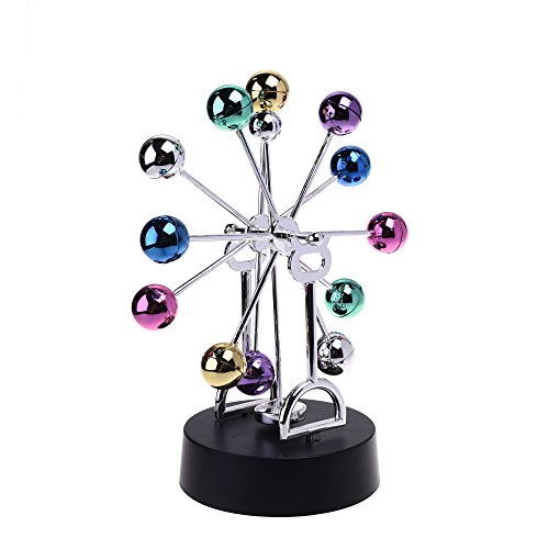 -. Feature : This kinetic sculpture has several brightly colored metallic balls that rotate like a ferris wheel / Approximately 9" tall x 6.5" wide with 4" diameter base, easy to assemble / After installing 4pcs AA batteries, move lightly, it would keep going on rocking around / A fun toy that can be placed in house, school or office, fun to watch, and relaxing to you / This classic desk toy makes a great office decoration or executive gift