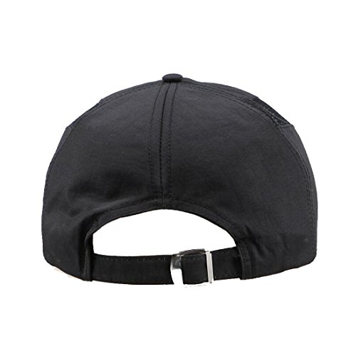 -. Feature : Unisex Style:Classic summer sports caps fit anyone. dark color suit for both women and men / Lightweight&Breathable:polyester material with mesh on the side ,skin-friendly ,breathable ,unique design perfect for any outdoor sports and activities in the upcoming weather. / Quick drying:Polyester sports cap can also dry out very fast after washing or sweat. Brings you a lot of convenience during use. / One Size Fit Most:Adjustable strap with metal buckle on the back,fits most by 56-60cm head girth, also can put ponytail through the back / Occasions:Ideal for runners, golfers, tennis players, and any indoor or outdoor activities