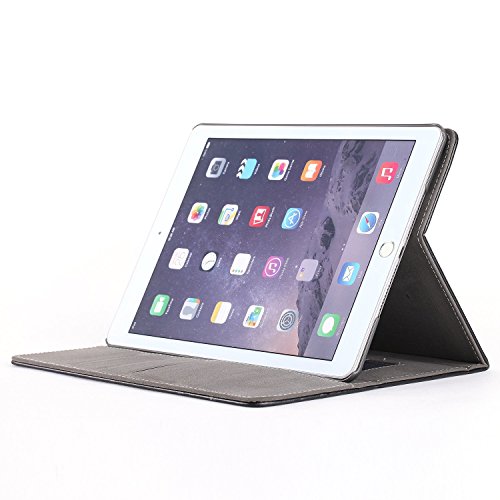 iBenzer Basic Folio Executive Series Premium Leather Folio cover, Wallet Design Flip Case with Stand, Sleep/wake Function, Elastic Hand Strap for iPad Air 2 iPad 6 (Black)