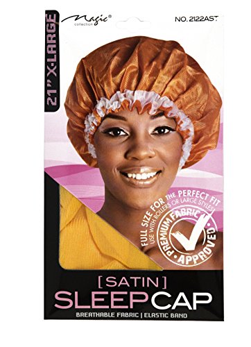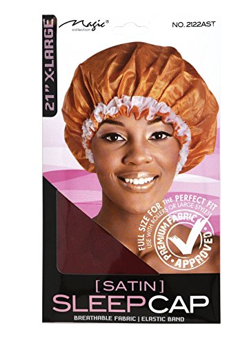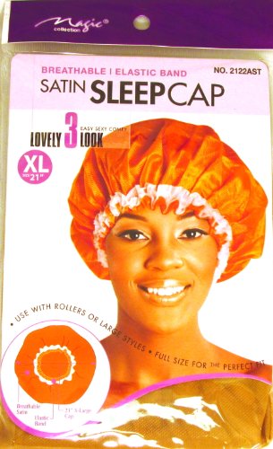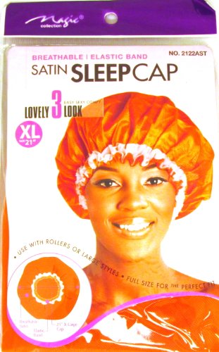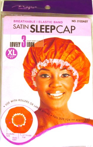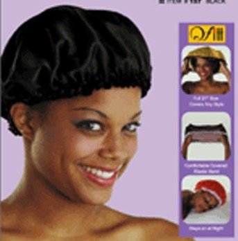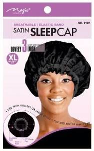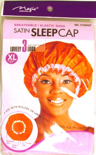 XL Black Satin Sleep Cap. Breathable & Comfortable Material with Comfortable Elastic Band. Keeps Hair In Place. X-Large 21" Full Size For The Perfect Fit. Use with Rollers or Large styles.Feature