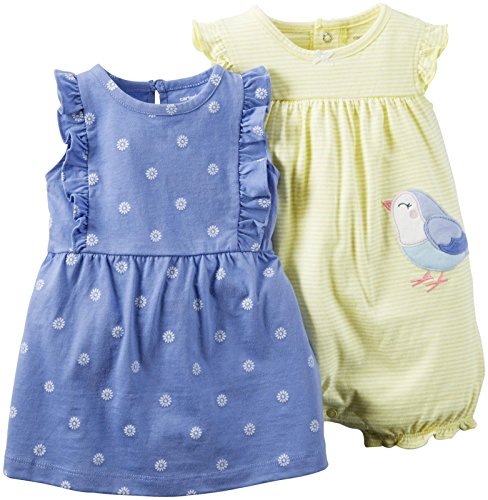 -. Title : Carters Baby Girls 2 Piece Stripe Romper and Geo Dress Set Coral